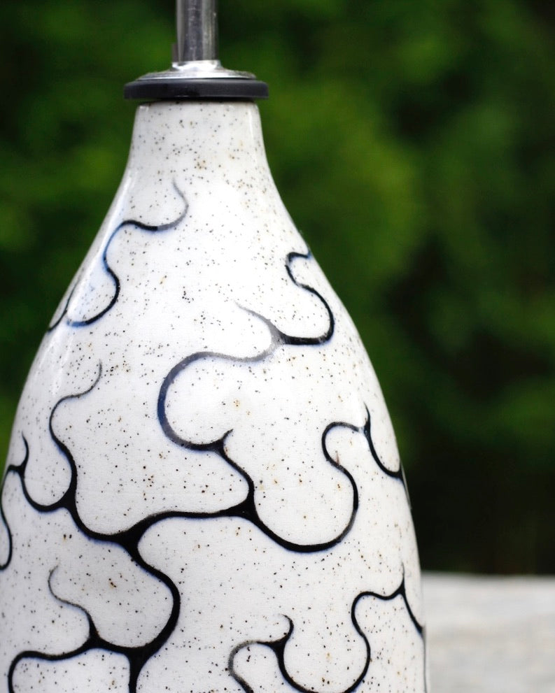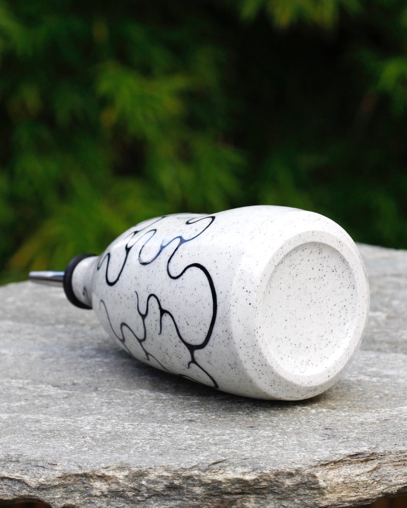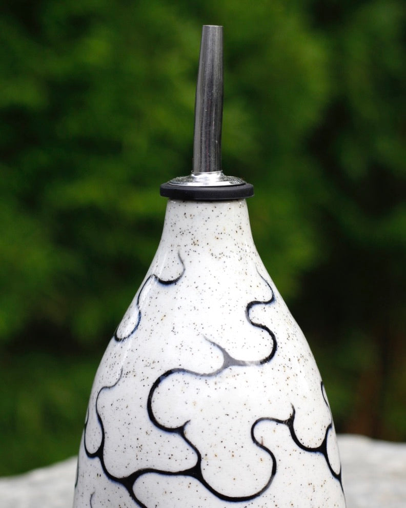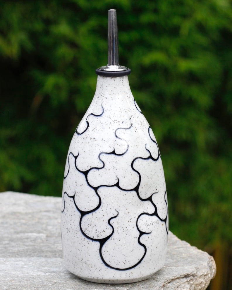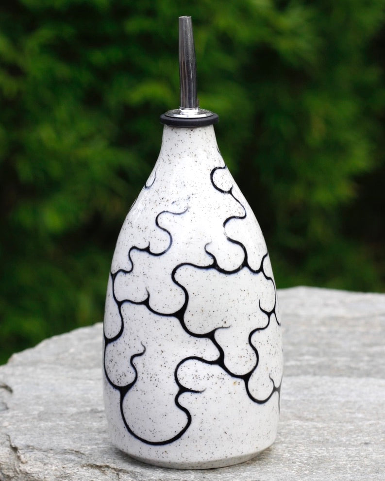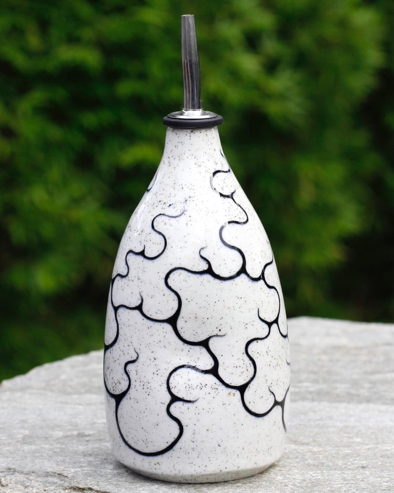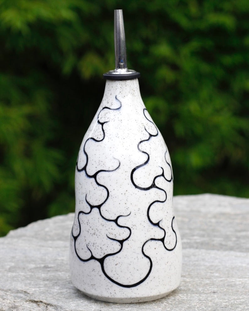 This oil bottle is handmade, hand painted, and stoneware.