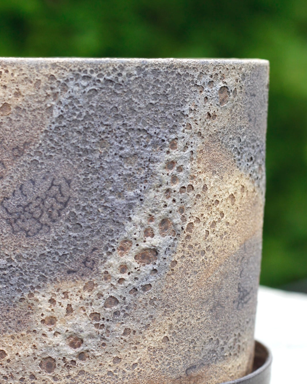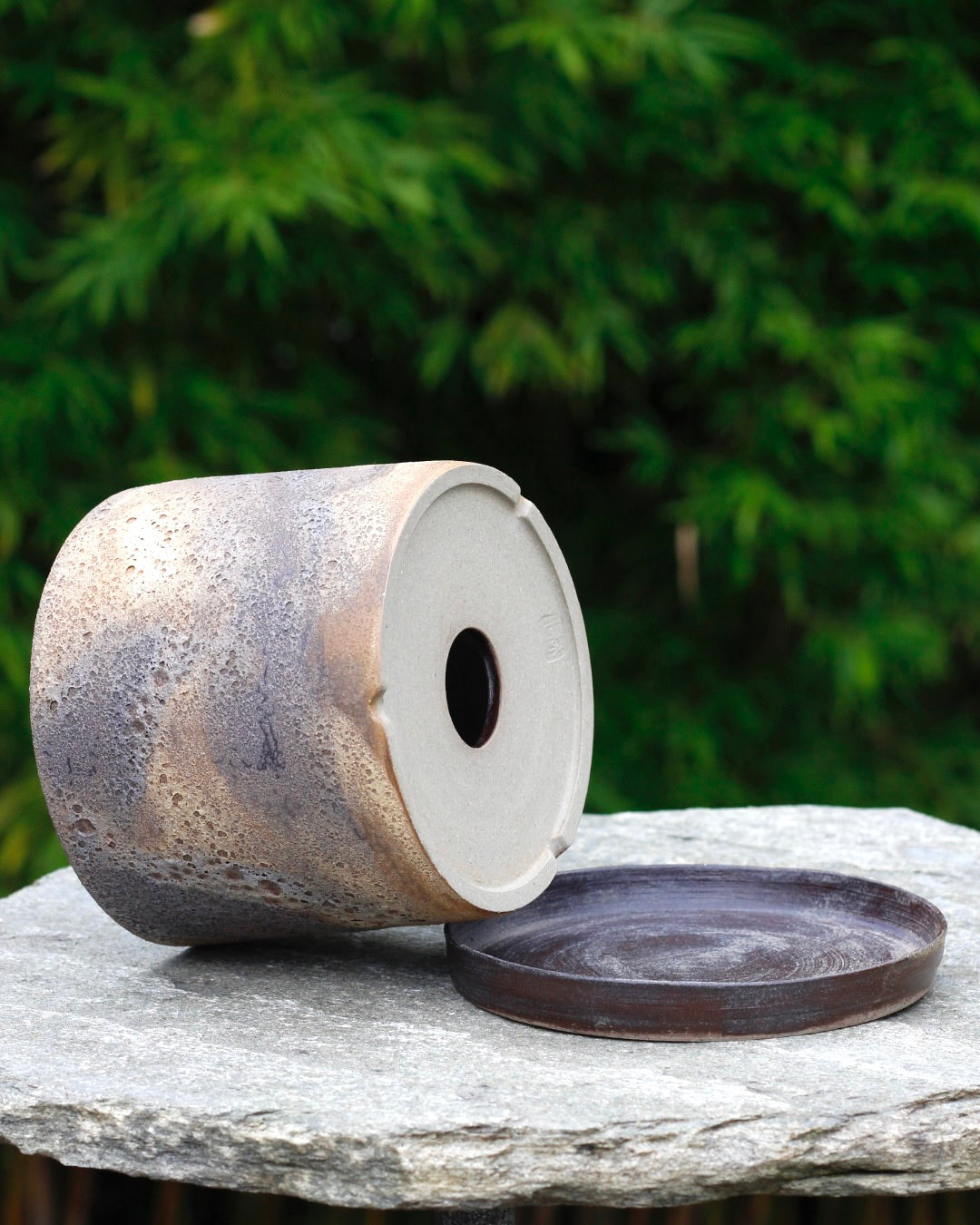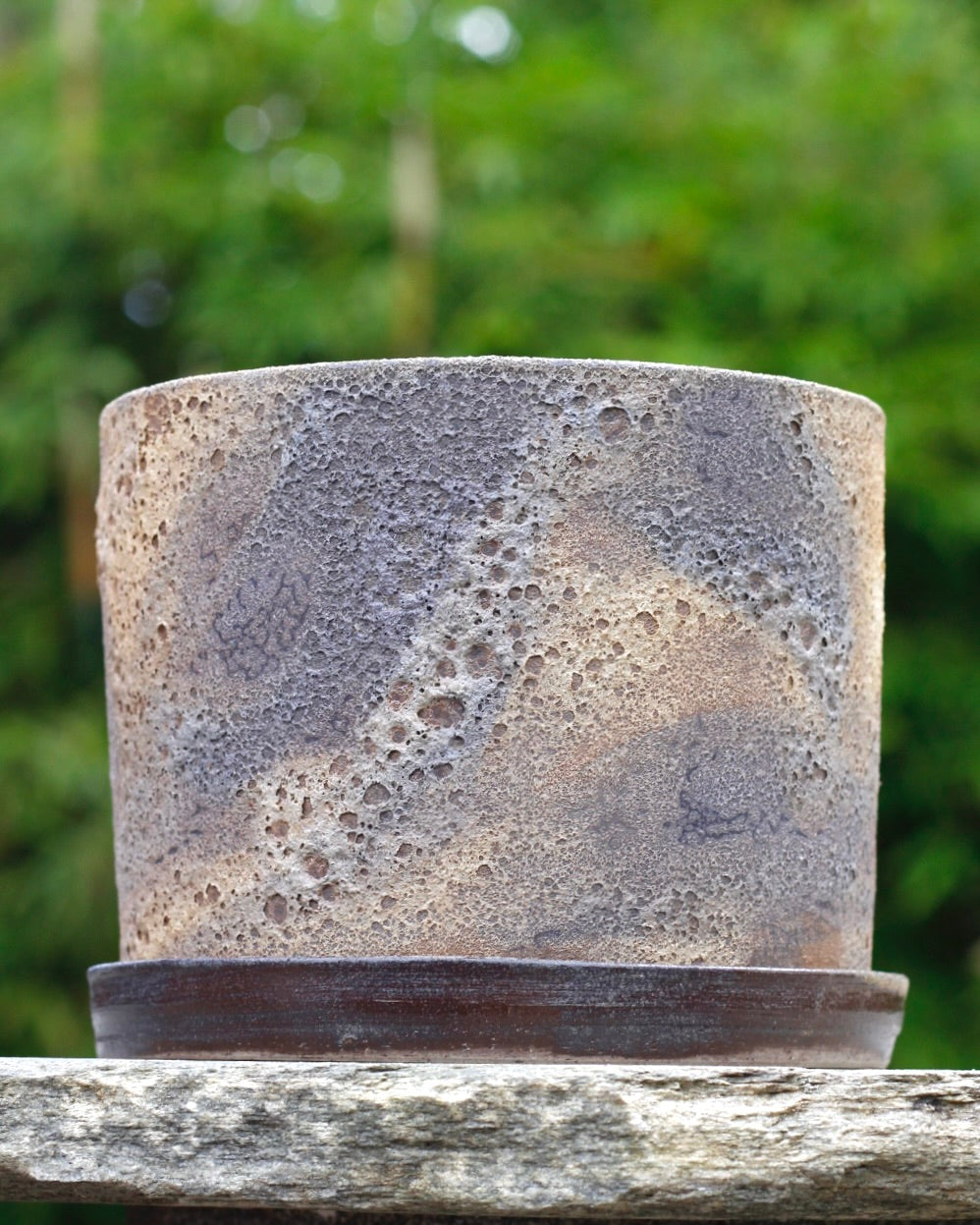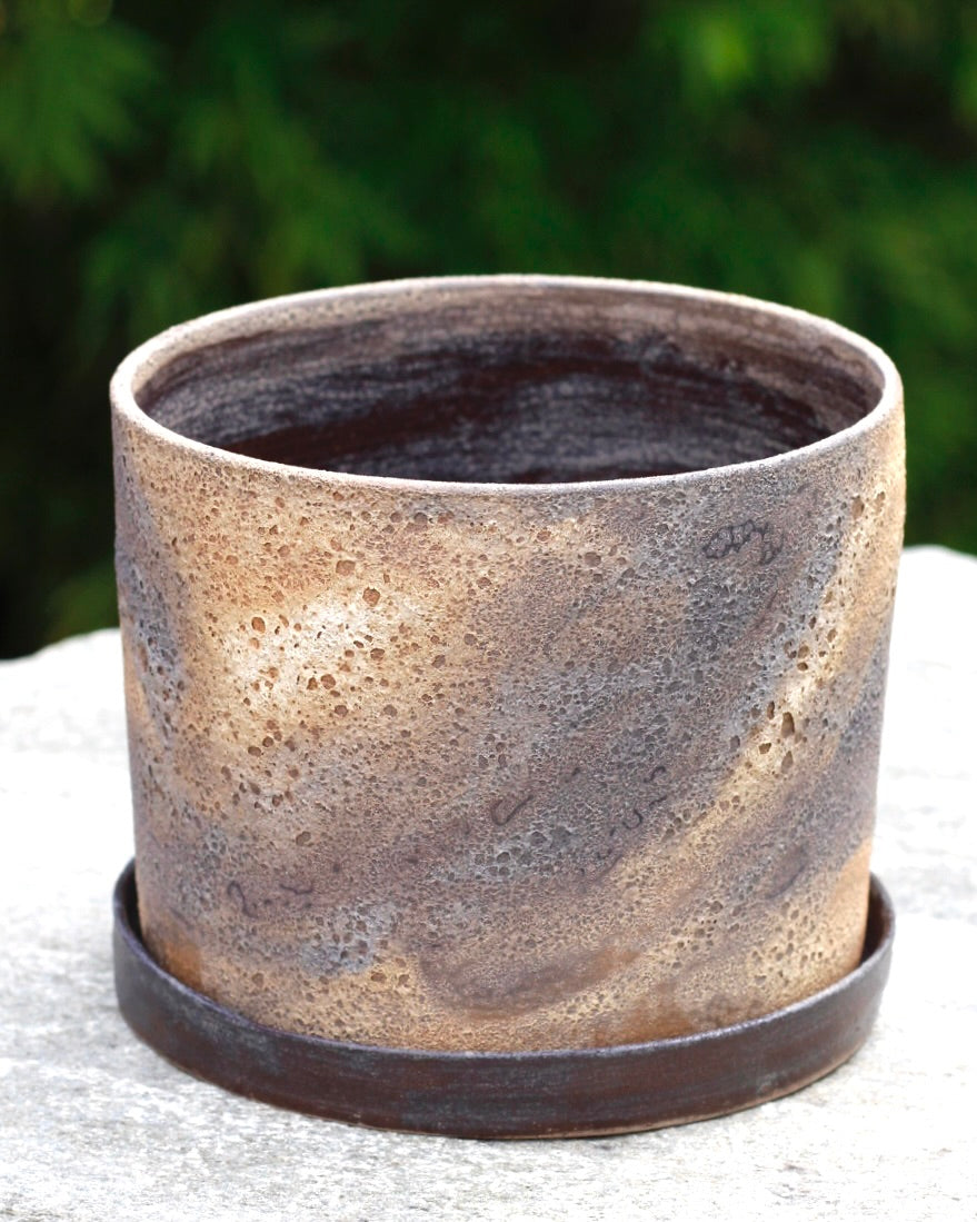 Handmade stoneware Planter Pot with Tray. Volcanic style finish.