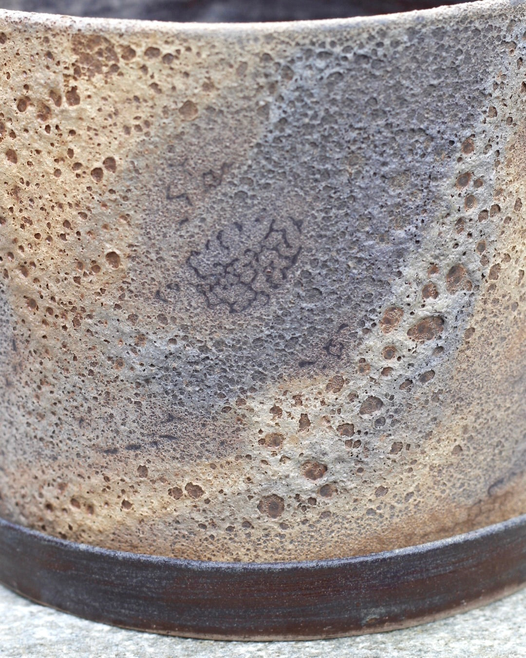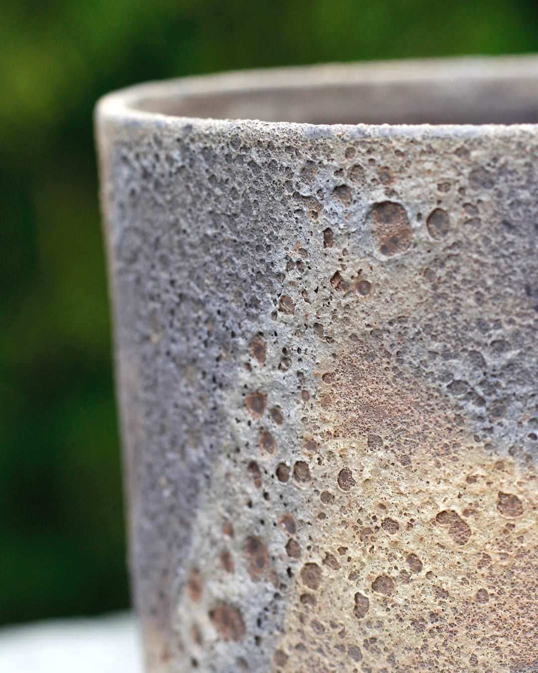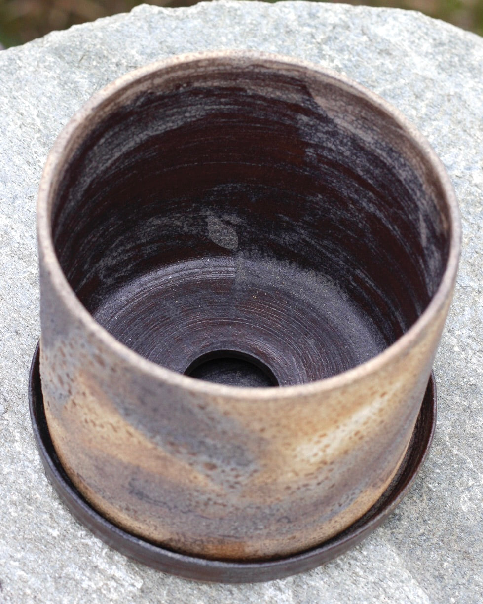 Handmade stoneware Planter Pot with Tray. Volcanic style finish.
