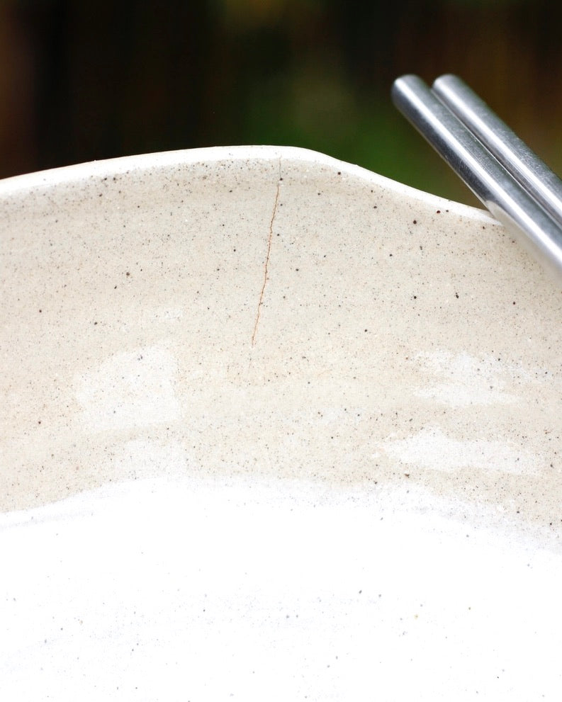 - On sale due to hairline crack at top of bowl as pictured. It does not go all the way through the wall of the bowl, so the bowl is sound for use and will not leak.