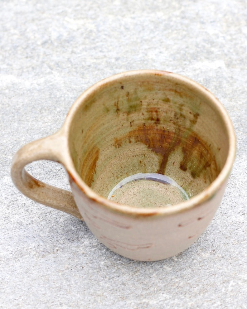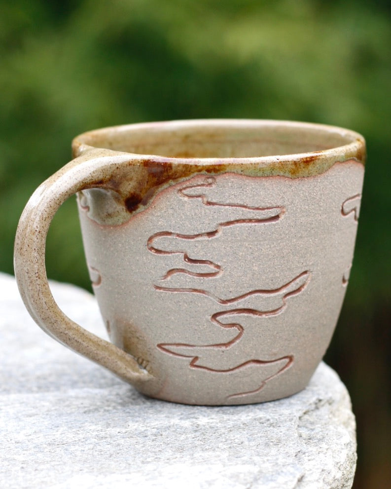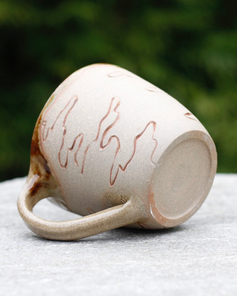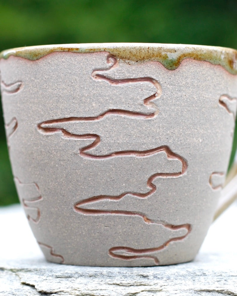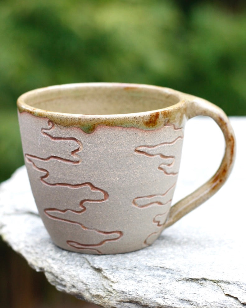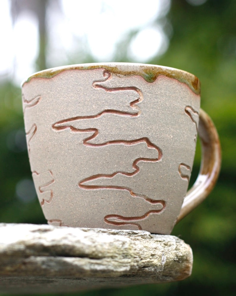 An ode to the Scribbly Gum tree/eucalyptus haemastoma- 430ml- 9cm height x 10cm diameter (excluding handle)- Handmade, wheel thrown- Stoneware- Dishwasher and microwave safe