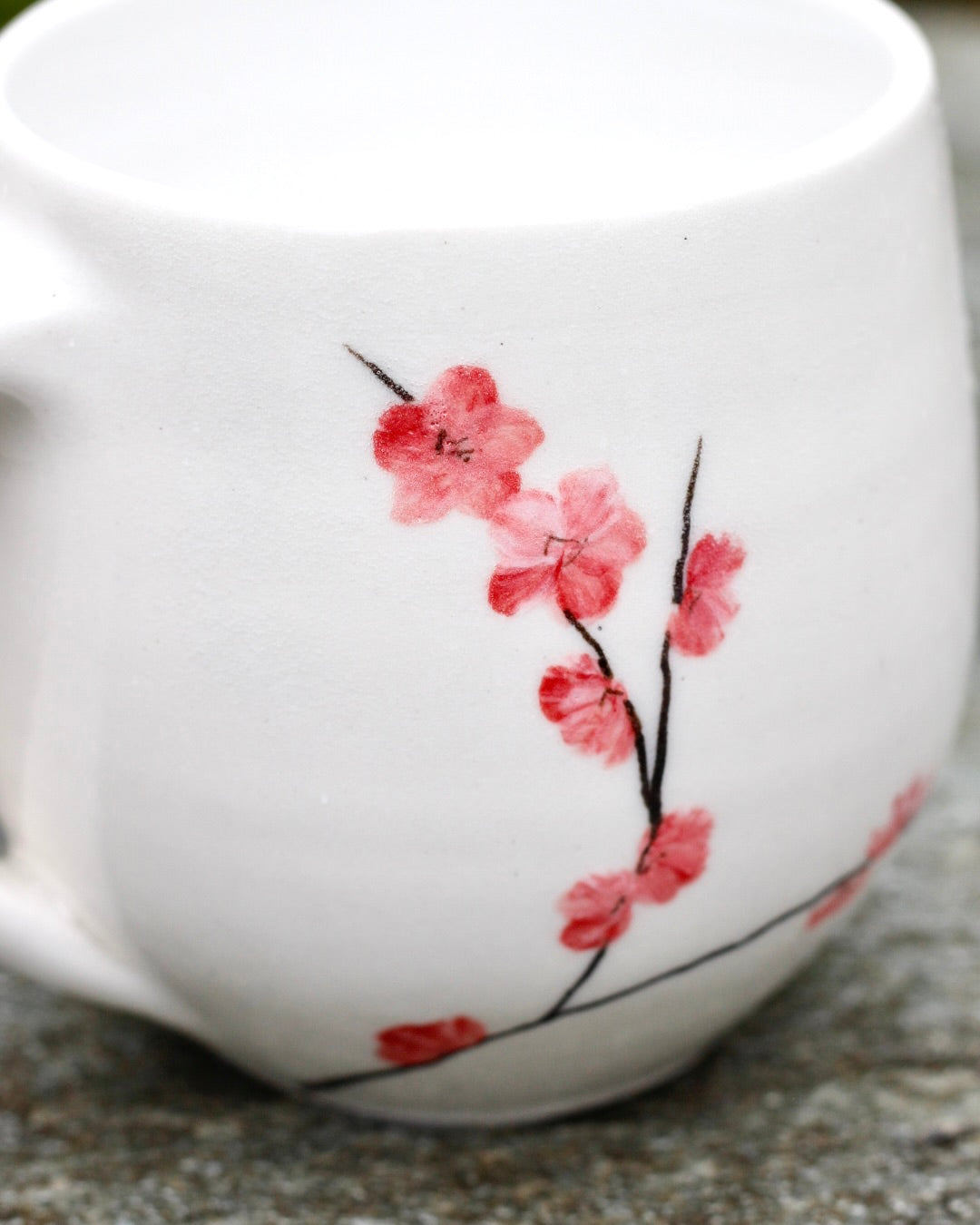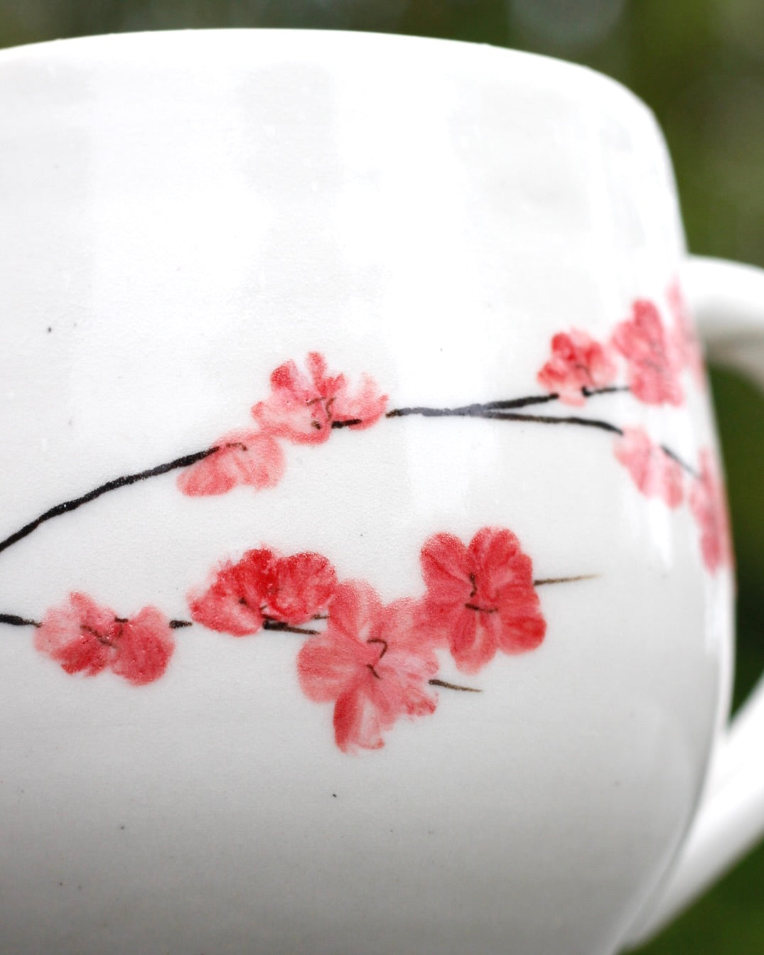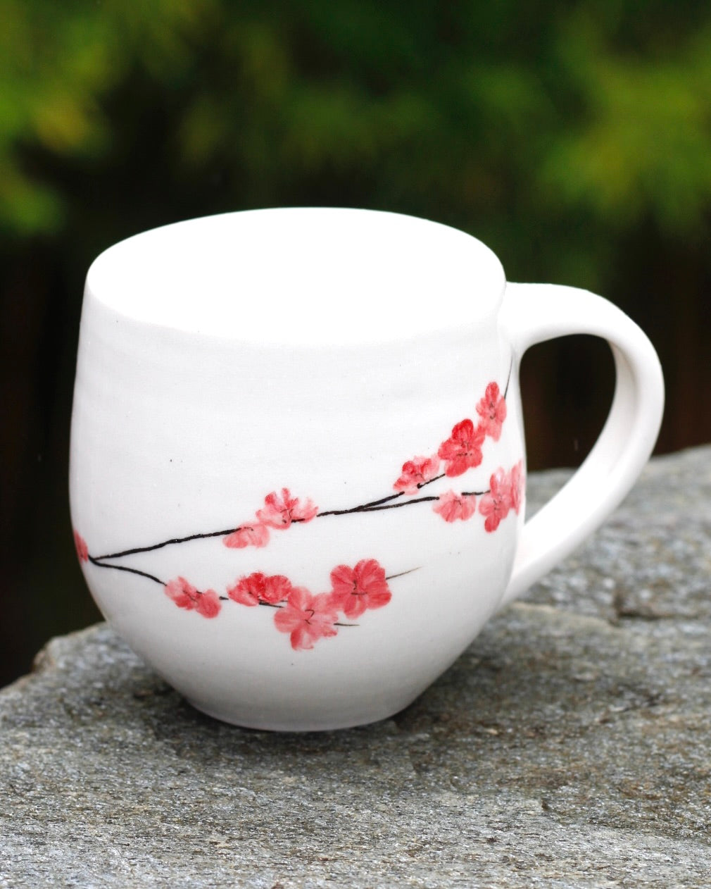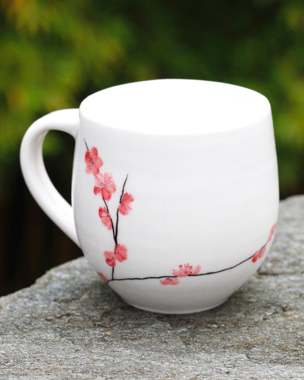 Cherry Blossom Mug- 8cm height x 8 cm width (not including handle)- 300ml- Handmade and hand painted- Stoneware