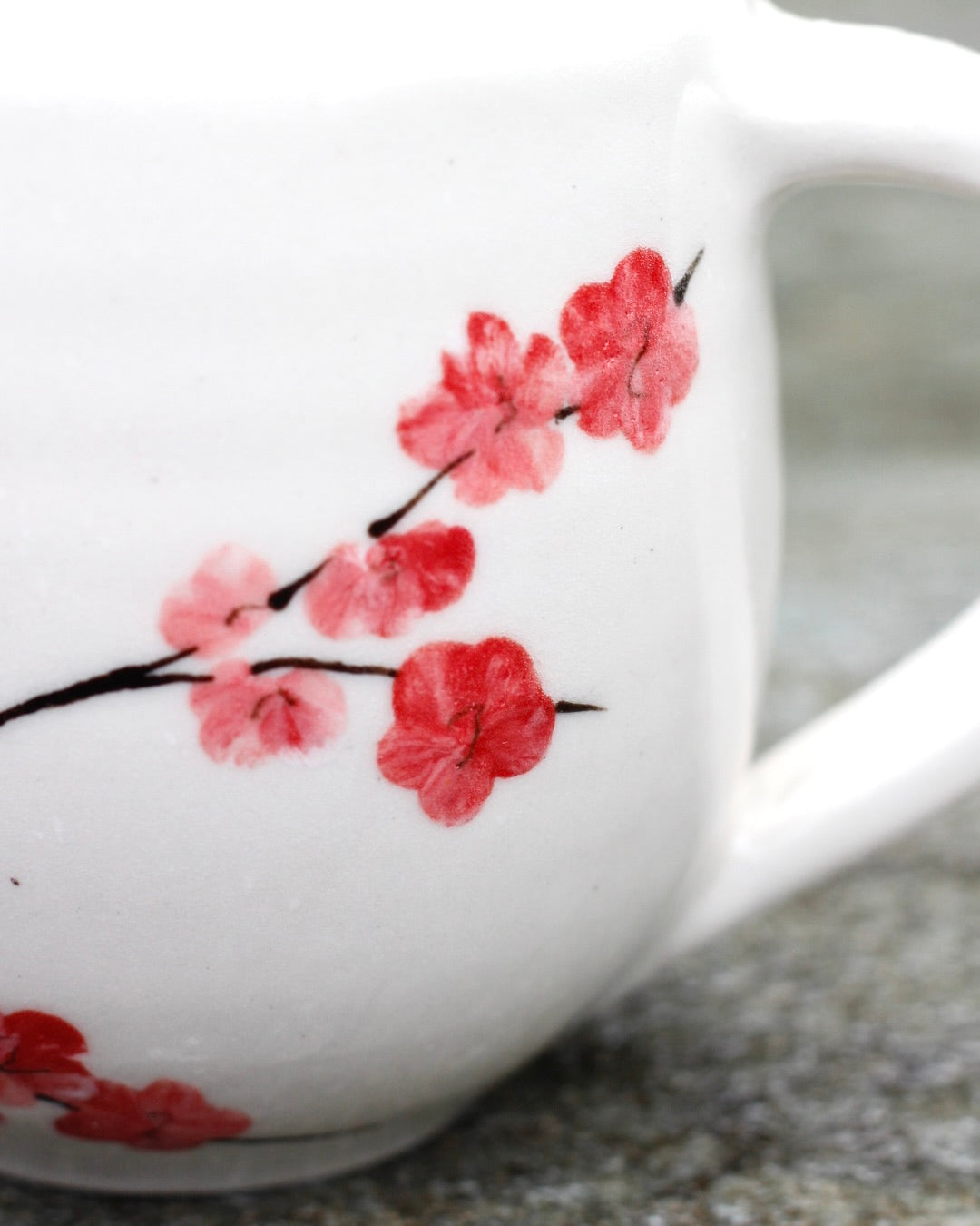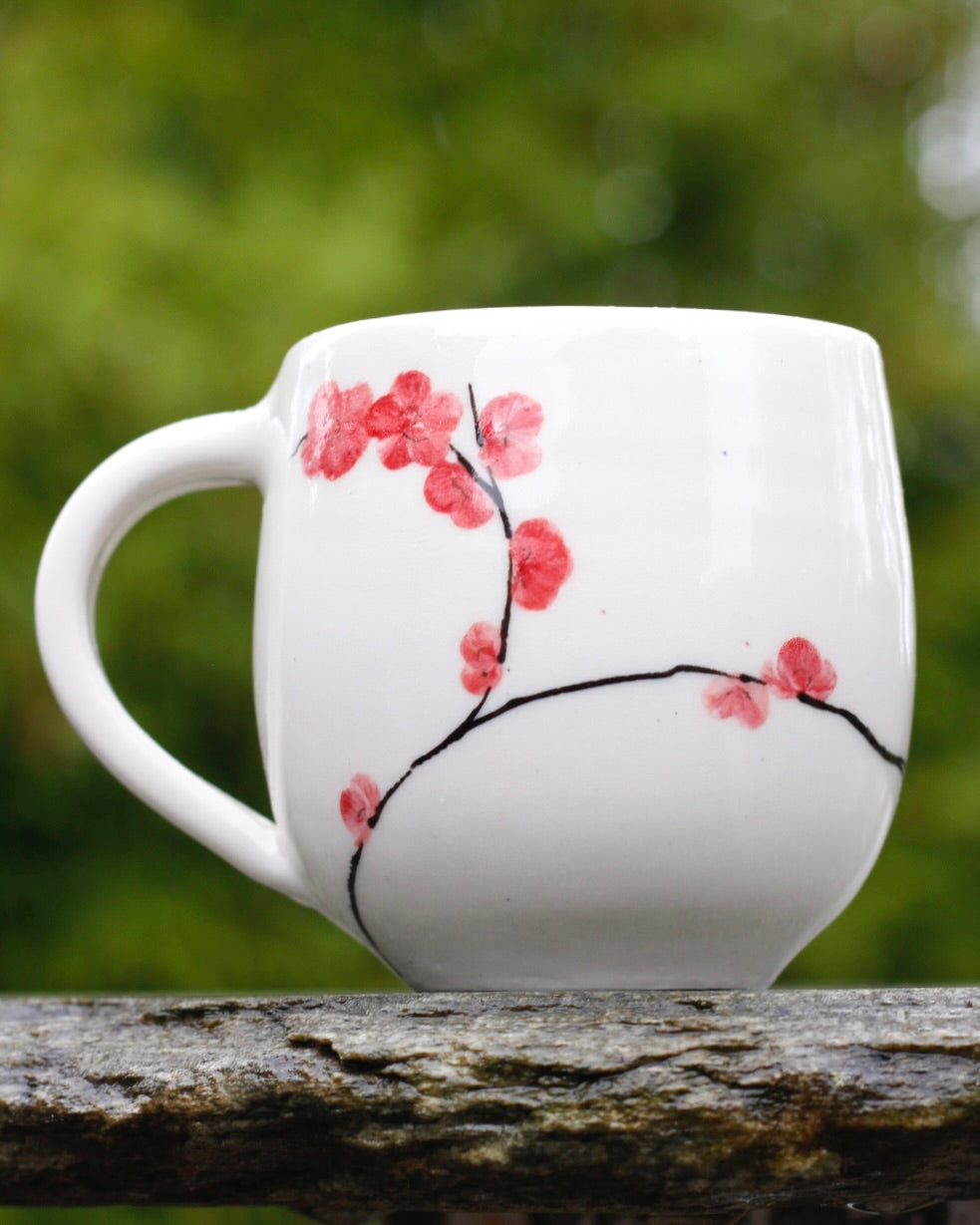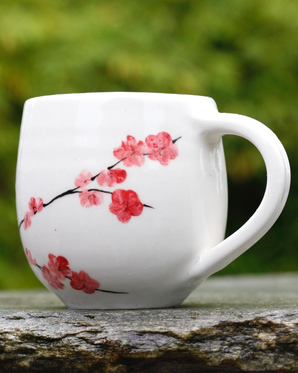 Cherry Blossom Mug- 7.5cm height x 7.5cm width (not including handle)- 250ml- Handmade and hand painted- Stoneware