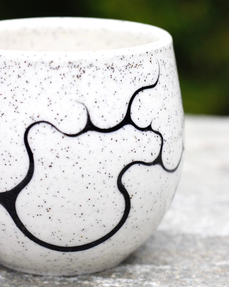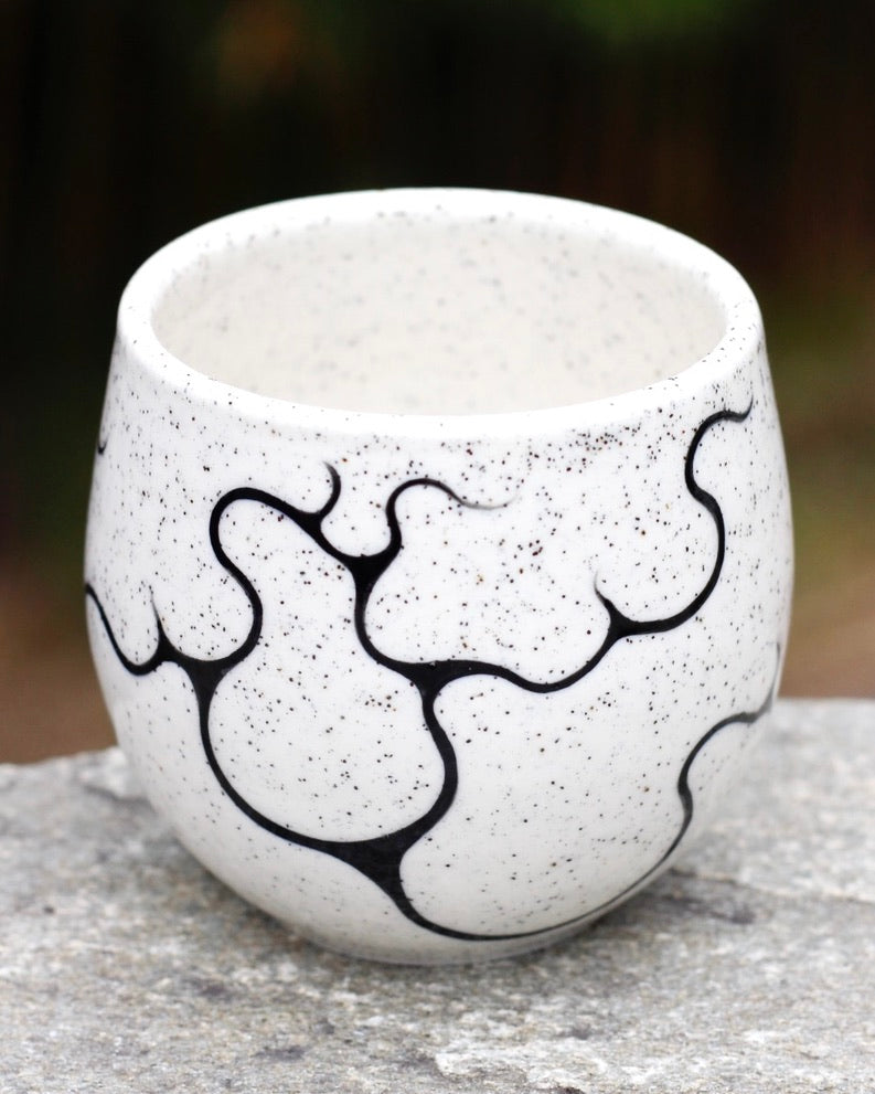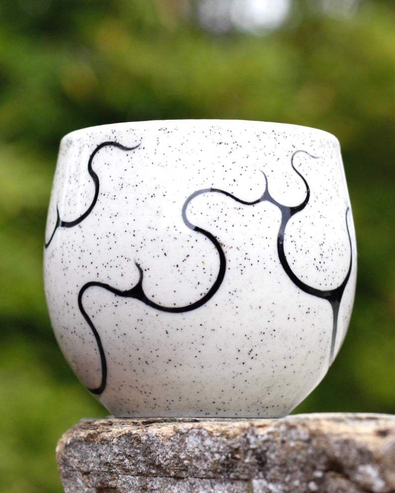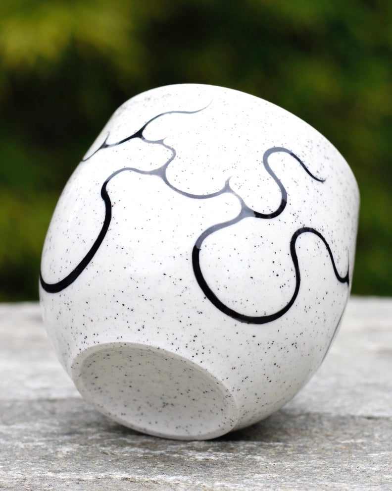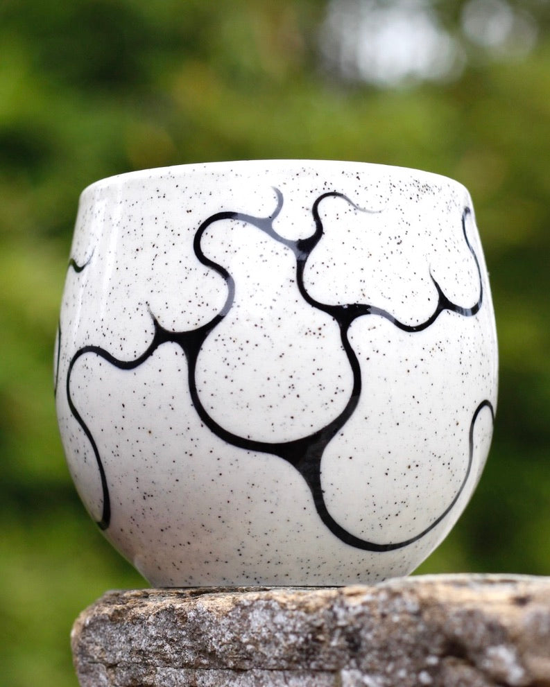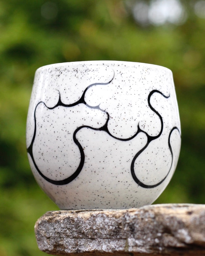- 270ml- 7cm height x 8cm width- Microwave and Dishwasher safe- Handmade and hand painted- Stoneware